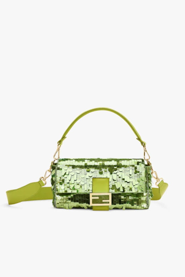 Sac à main en cuir à paillettes vert acidulé "Baguette" de Fendi