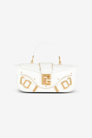 Sac à main pochette en cuir embossé crocodile blanc © Balmain
