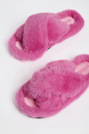 Chaussons en fausse fourrure rose "Biba" d'Apparis