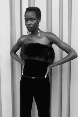 Combinaison noire en fausse fourrure et velours forme bustier de Saint Laurent