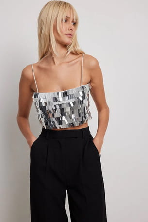 Haut argenté à décolleté carré et sequins de Na-Kd