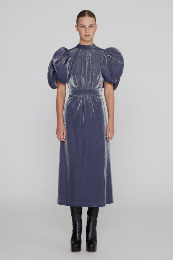 Robe bleue métallisée à manches bouffantes de Rotate Birger Christensen