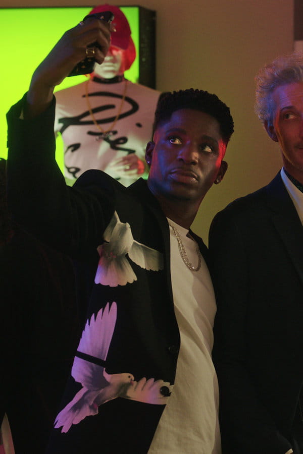 Julien en veste de costume à imprimé colombes 3 Paradis © Netflix
