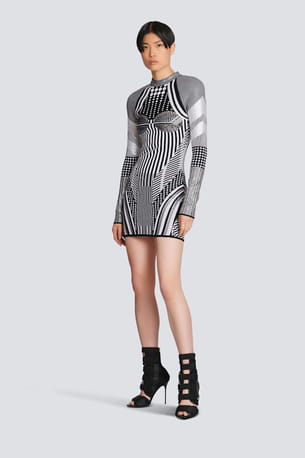 Robe noir et blanc courte en jacquard à imprimés de Balmain