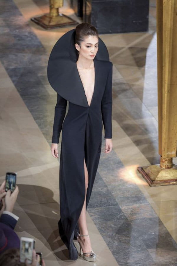 Robe noire à col asymétrique de Stéphane Rolland