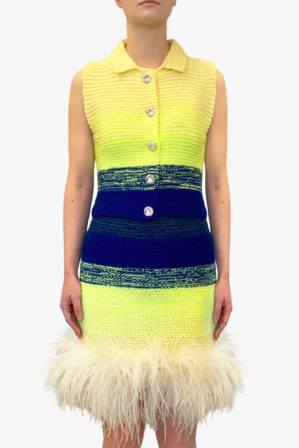 Veste sans manches et jupe bleu et jaune brodées à la main de Germanier