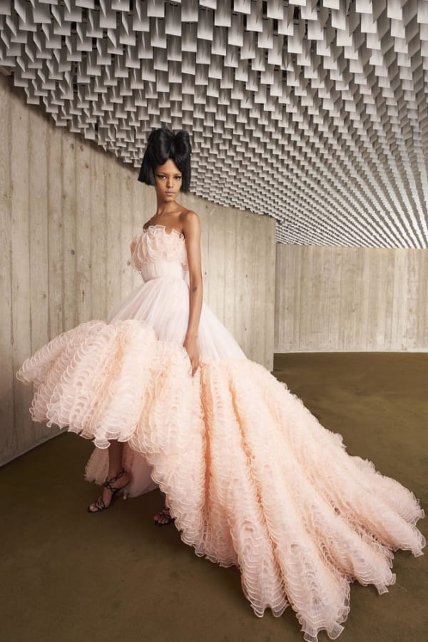 Robe rose à volants de Giambattista Valli haute couture 2021