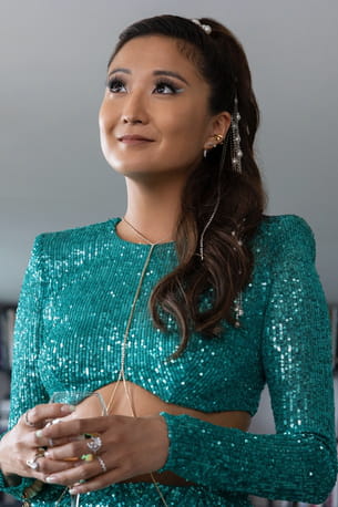 Mindy dans un ensemble bleu Elisabetta Franchi © MARIE ETCHEGOYEN/NETFLIX