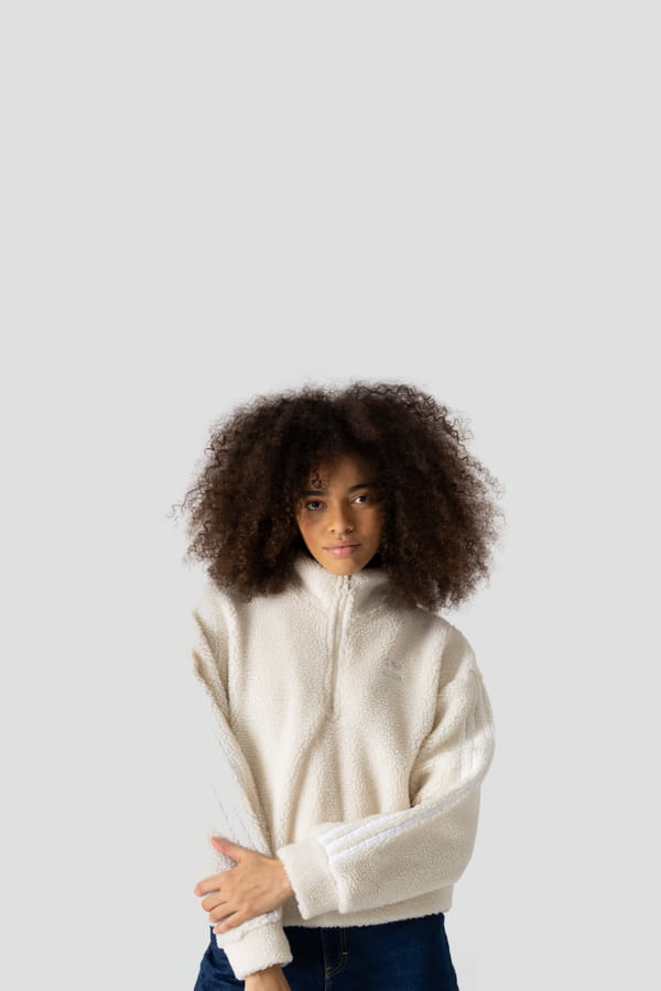 Sweatshirt blanc zippé duveteux d'Adidas chez Courir
