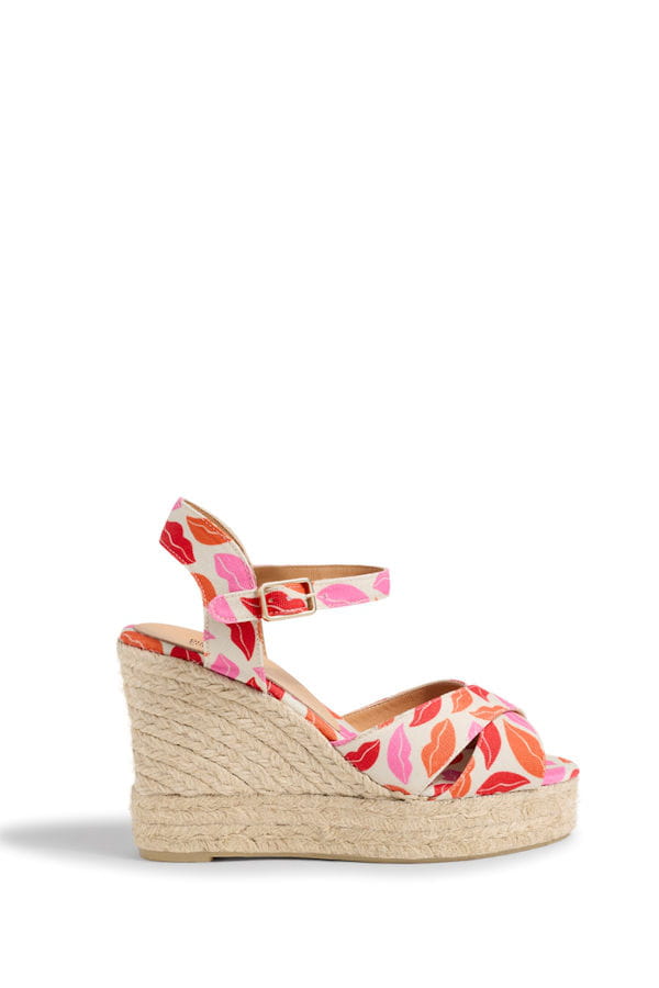 Sandales compensées à motifs bouches de Castañer x Diane Von Furstenberg