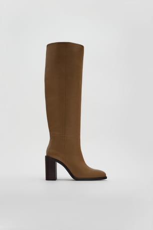 Bottes montantes marron à talons en cuir de Zara