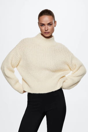 Pull écru col montant tout doux de Mango