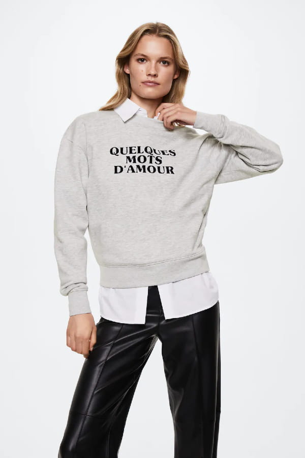 Sweat gris en coton à message de Mango