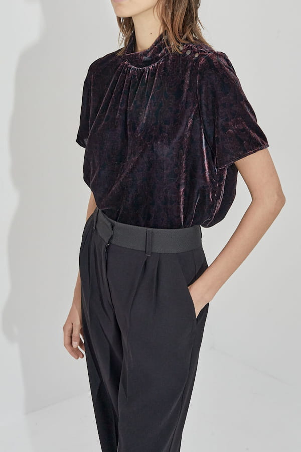 Top en velours à imprimé baroque et col cheminé d'IKKS