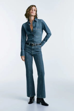 Jean évasé taille haute avec coutures bleu moyen de Massimo Dutti