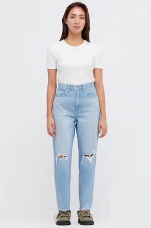 Jean mom taille haute déchiré bleu d'Uniqlo