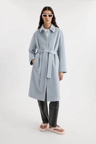 Manteau bleu clair en laine avec une ceinture "Millenium" d'Axel Arigato