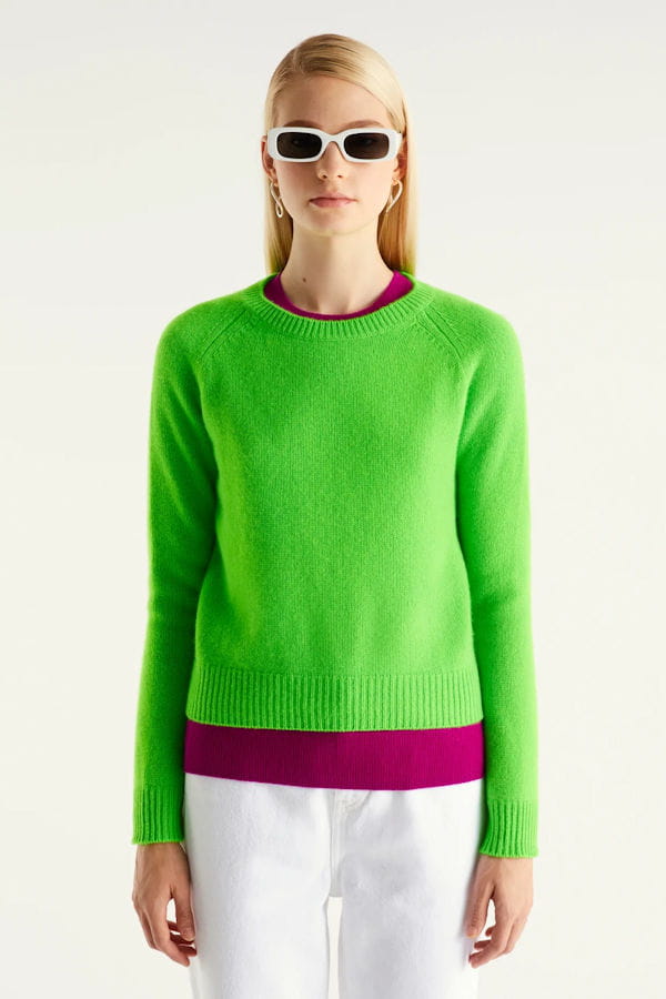 Pull col rond court en cachemire vert citron "6 Fiils" de From Future