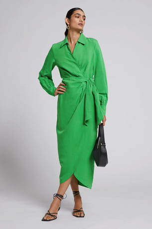 Robe mi-longue verte portefeuille à col de & Other Stories