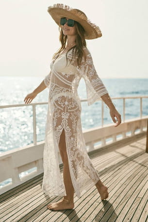 Robe blanche en dentelle transparente "Beach Cover-Up" de Superdry