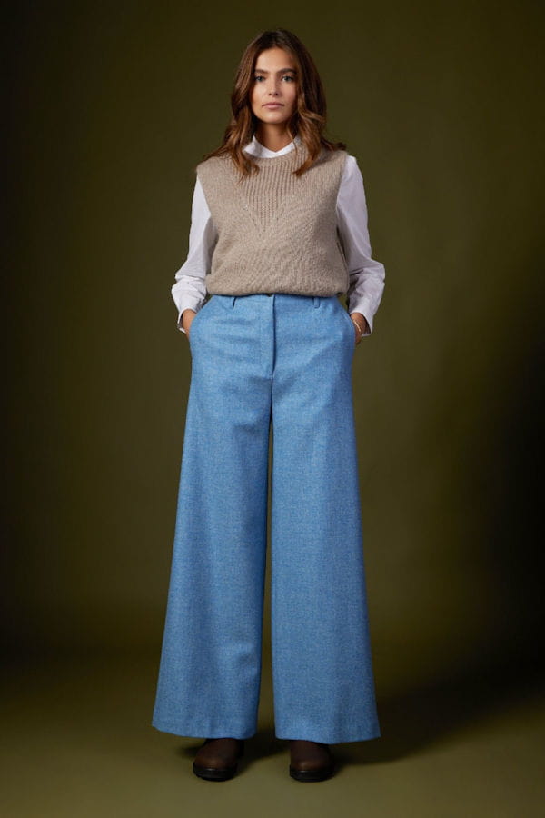 Pantalon en laine vierge évasé "Pomeoto" de Diega