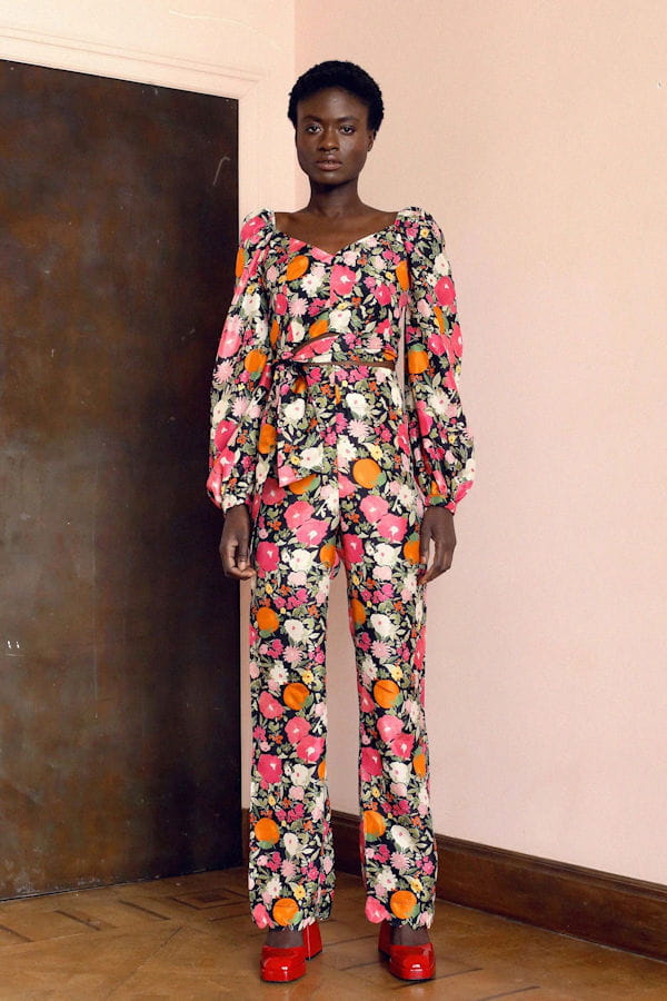 Pantalon fluide en soie imprimé fleurs "Kea" de Fête Impériale