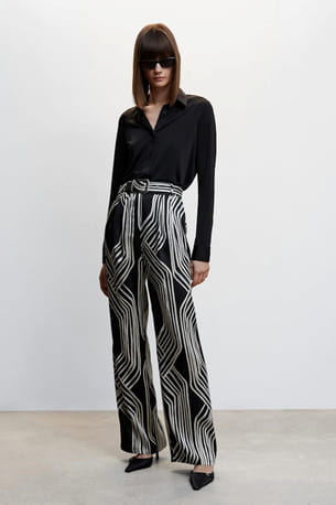 Pantalon palazzo imprimé noir et blanc de Mango