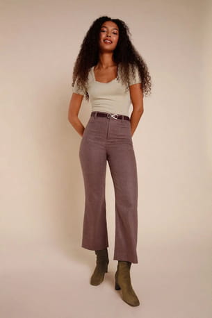 Pantalon taille coupe évasé aux chevilles chiné bordeaux "Swan" de Rouje