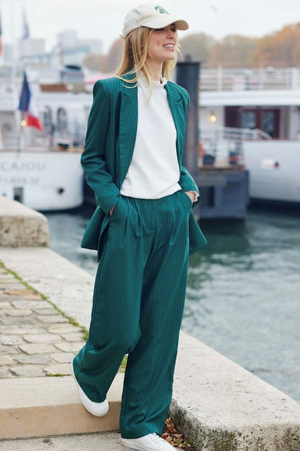 Pantalon tailleur vert à fines rayures "Jomana" de La Petite Étoile