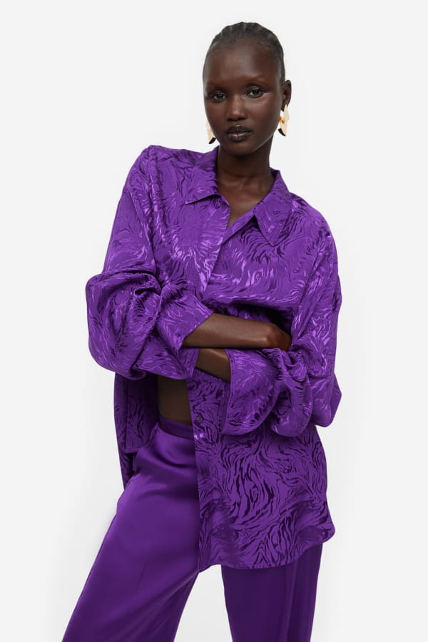 Chemise oversize violette en tissu jacquard de H&M