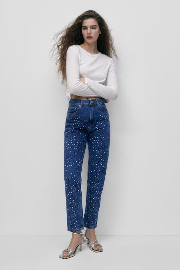 Jean mom à strass de Pull & Bear