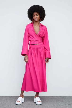 Chemise croisée fuchsia de Mango