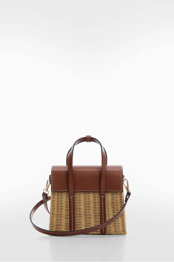 Sac pochette en fibre naturelle à détails contrastés de Mango