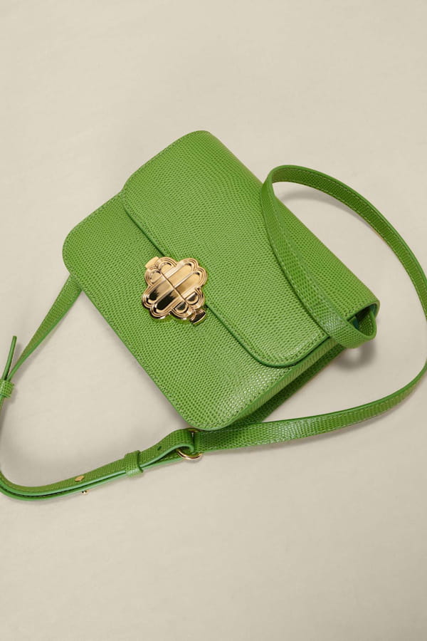 Sac à main en cuir embossé lézard vert de Maje