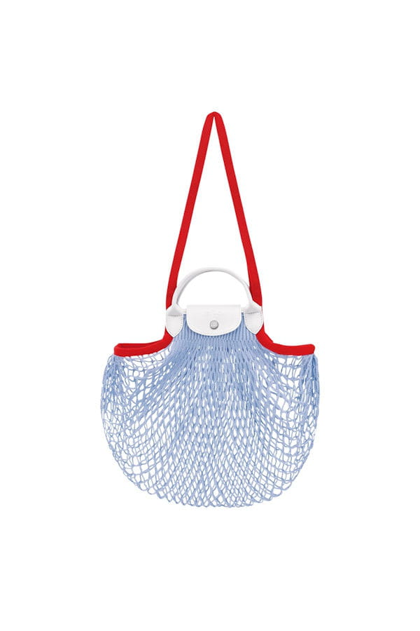 Sac à main en filet bleu et rouge "Le Pliage" de Lonchamp