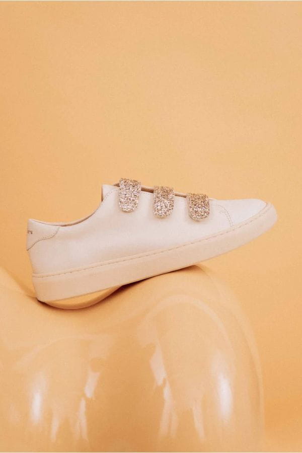 Baskets blanches en cuir à scratchs pailletés de Bobbies