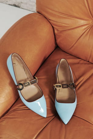 Ballerines en cuir verni bleu ciel "Jime" de Maison Skorpios