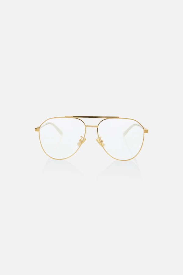 Lunettes de vue dorées en métal aviateur de Bottega Veneta chez MyTheresa