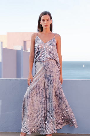 Pantalon large en soie imprimé tie and dye à sequins "Darisette" de Mes Demoiselles