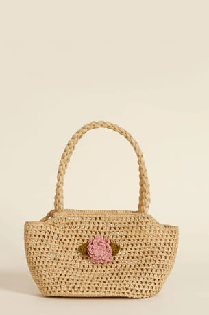 Mini sac panier tressé en raphia à fleur contrastante Rania de Rouje