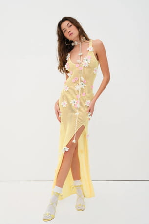 Robe en crochet jaune à détails fleurs et fente "Corie" de For Love and Lemons