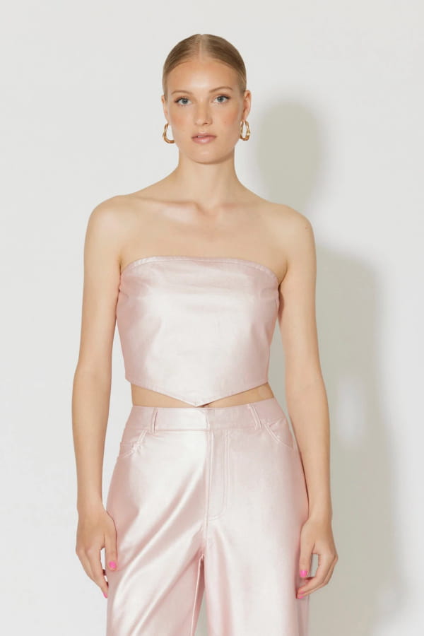 Top court bandeau rose holographique de Vero Moda