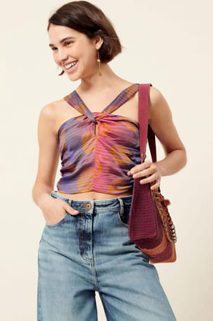 Top court esprit foulard en mousseline de viscose "Le Levant" de Sessùn