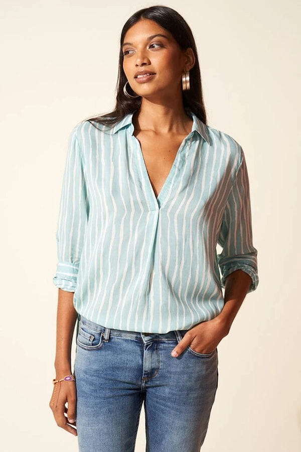 Blouse à col chemise et impression rayures "Tally" de Sud Express
