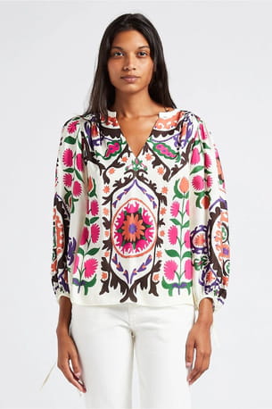 Blouse à manches ballon à encolure V imprimé "Fida" de Ba&Sh sur Place des Tendances