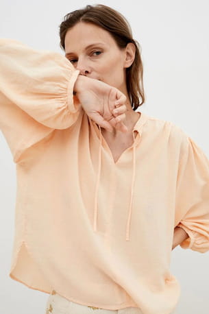 Blouse orange clair fluide à col tunisien "Olivia" de The New Society
