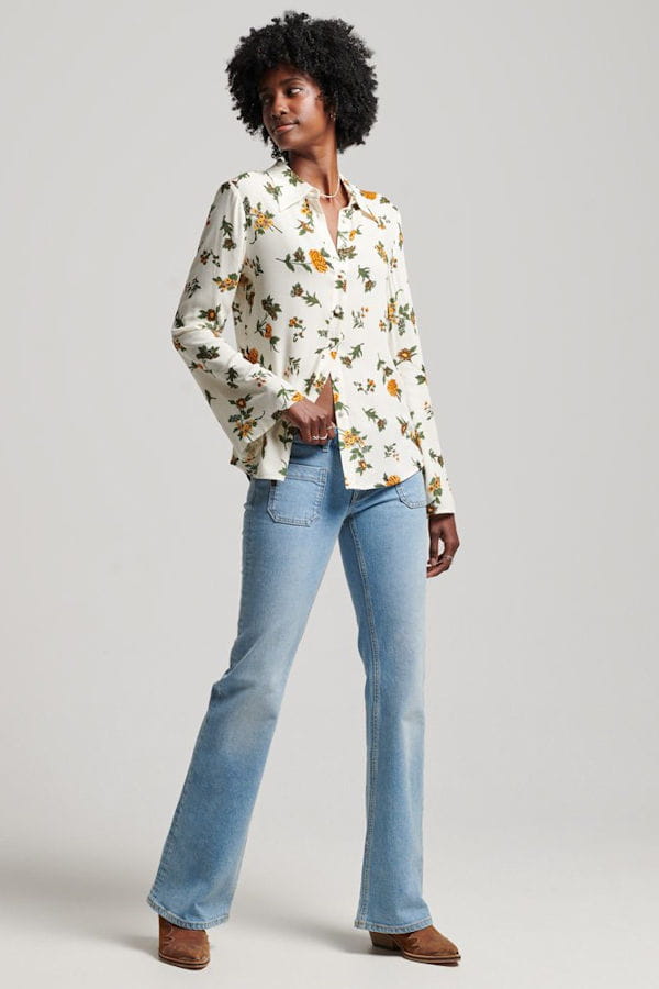 Chemise blanche à fleurs et manches longues évasées "Studios Seventies" de Superdry