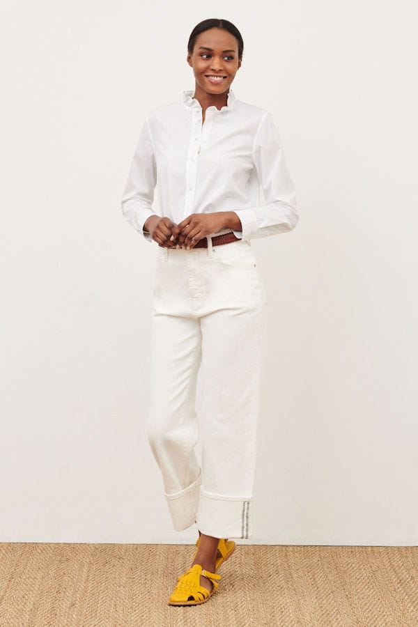Chemise blanche en coton et col à volants de Comptoir des Cotonniers