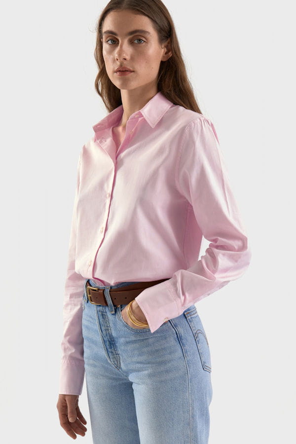 Chemise en pin point rose et boutons en nacre "Marion" de Figaret