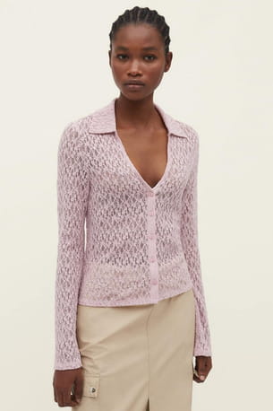 Chemise en dentelle rose transparente à décolleté plongeant de Stradivarius